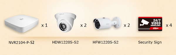 KIT-N2104 (NVR2104-P-S2, 4ch NVR with 4-port PoE, IPC-HDW1220S, IPC-HFW1220S)